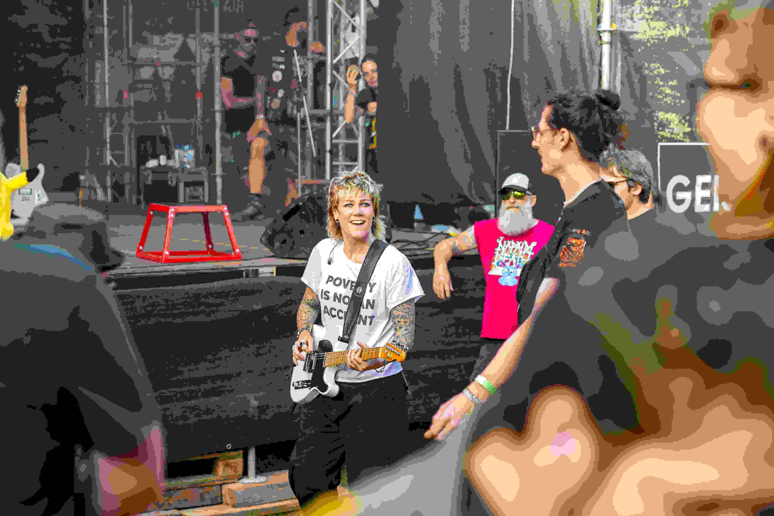 Im Zelt ging es mit Fucking Angry weiter. Die haben sich mittlerweile auch einen Ruf erspielt, das sah man dann auch daran, dass das Zelt gut gefüllt war. Mit …Still Fucking Angry! haben die Bonner 2024 eh ein Bombenalbum abgeliefert. Live konnten sie ihre Wut und Energie aufs Publikum transferieren. Die Frontfrau hat scheinbar wirklich eine Menge Wut in sich, die sie live gut herauslässt. Ich fand es echt einen starken Auftritt, der viele zum Pogen animierte.