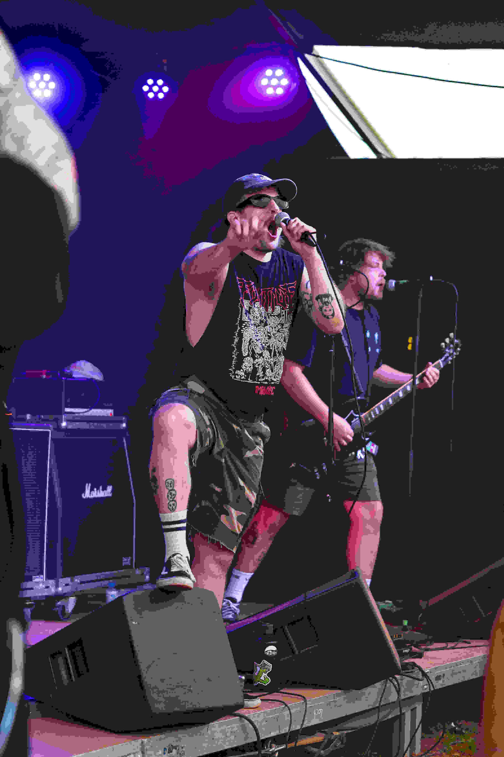 Hier in Bausendorf gaben State Power auch alles. Für mich die neuere Hardcore Band der Stunde. Roh und aggressiv mit klarer politischer Botschaft. Da es dieses Jahr zwei Bühnen gab, spielten sie im Zelt, was auch gut passte. Das Zelt war gut gefüllt und die Band lieferte ab und hatte dabei mega Spaß. Zwischen zwei Songs bauten sie ein Sample von Chumbawambas The Day The Nazi Died ein. Herrlich! Zuletzt gab es den für mich absolut geilsten Song Final Hour.