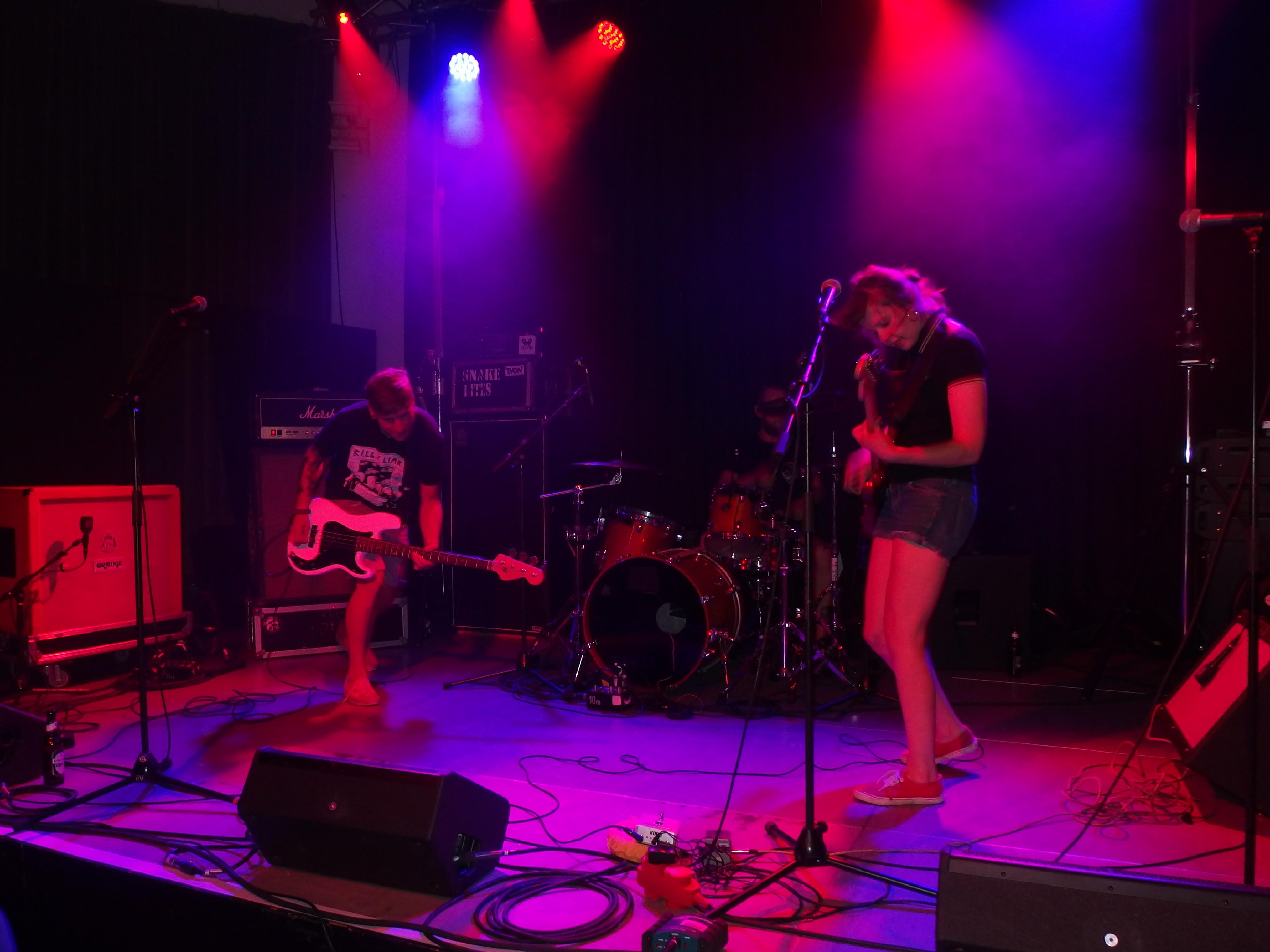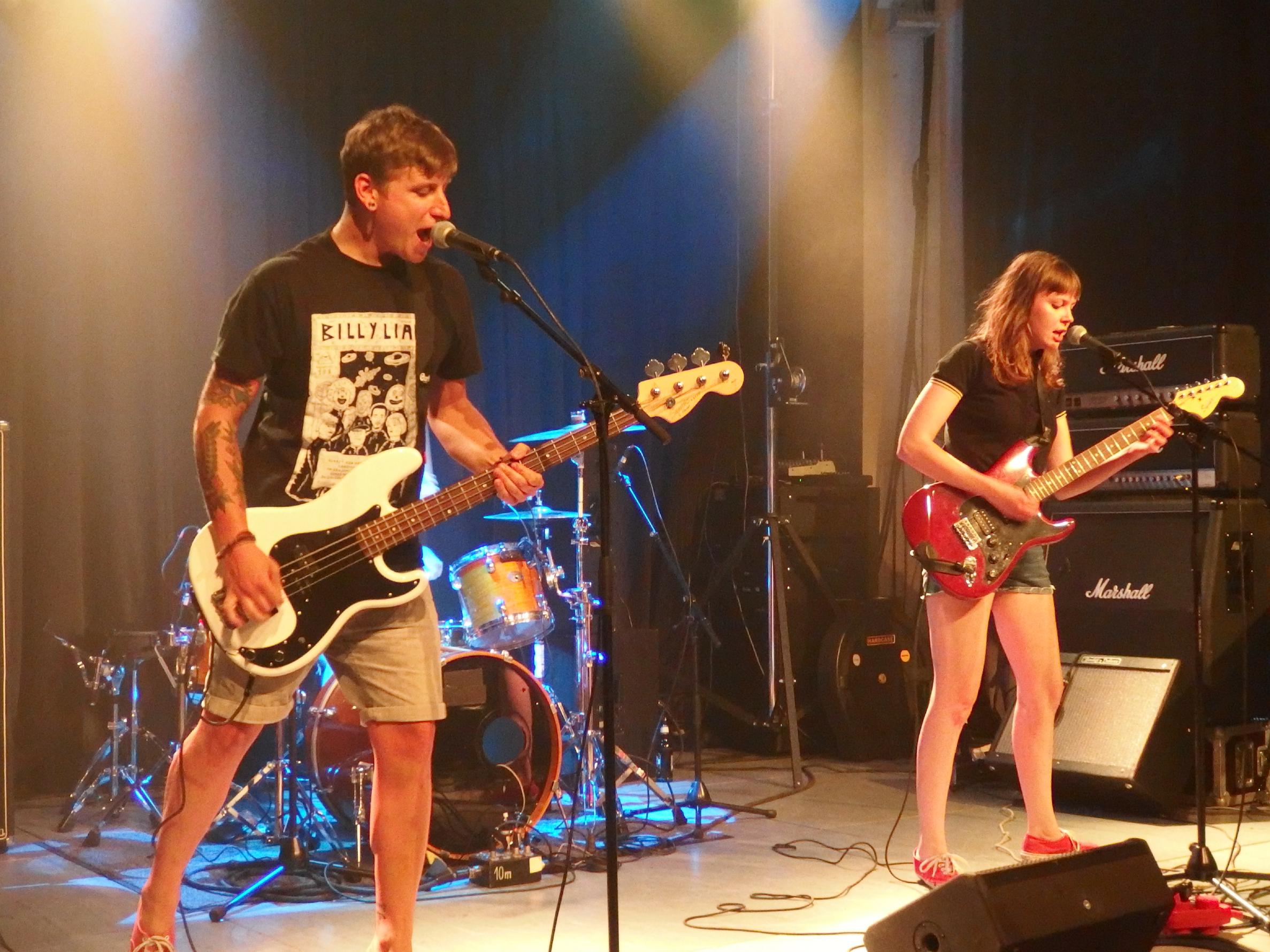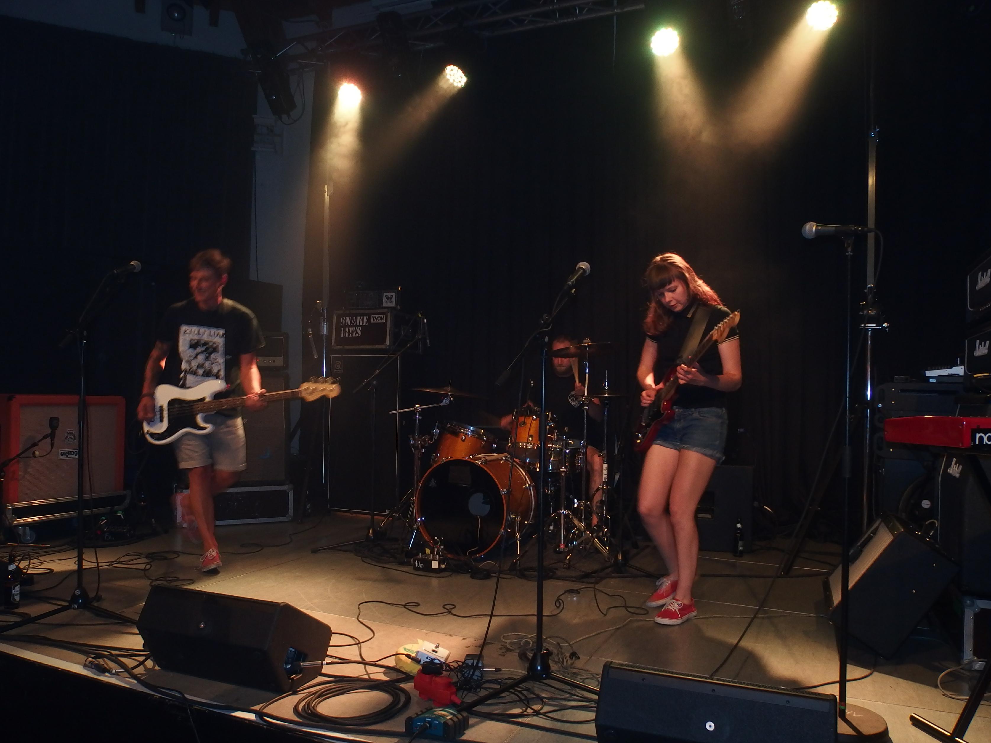 No Fun aus Nürnberg und Berlin sind gut drauf, befinden sie sich doch seit sie auf Tour sind, in einem Prank War mit Such Gold und präsentieren auch gleich ihr Furzkissen, das allerdings nur mit Mikrofon hörbar ist. Beeindruckend ist die Bühnenpräsenz von Sängerin/Gitarristin Andreya, die locker durch den Abend führte und auf der Bühne einfach nicht stillstehen konnte. Bassist Jens versuchte es ihr gleich zu tun, kommt aber nicht ganz mit. leider gab es technische Probleme, so dass der bass kurzfristig ausfiel und die Band so ihr Programm etwas kürzen musste. Zum Abschluss gab es Cheesecake, dazu hatte die Band auch ein witziges Video gedreht. Ihr energiegeladener Fun-Punk/Skate-Punk ist ein wunderbares Liveerlebnis. Auch die Platte How I Spent My Bummer Vacation ist recht gut, kommt allerdings nicht ganz an den Livesound heran. Eine sympathische Band!