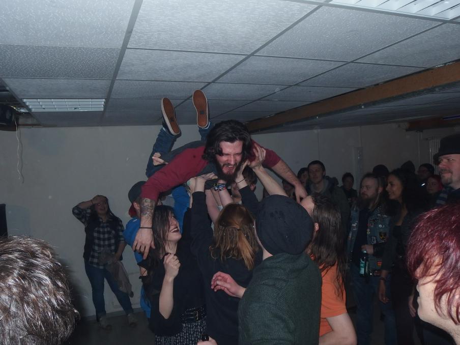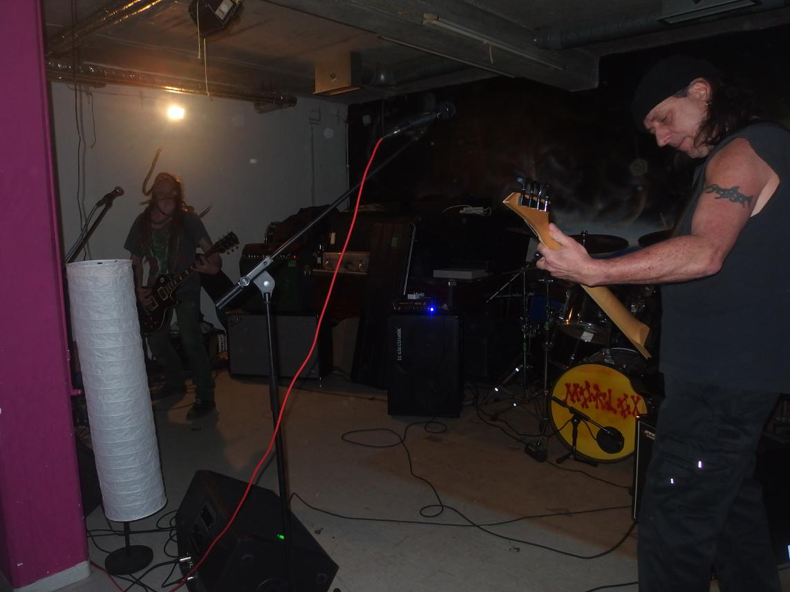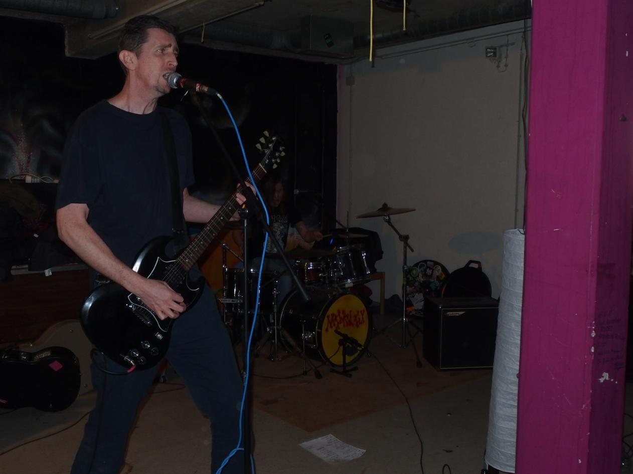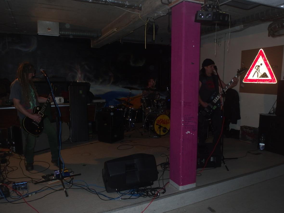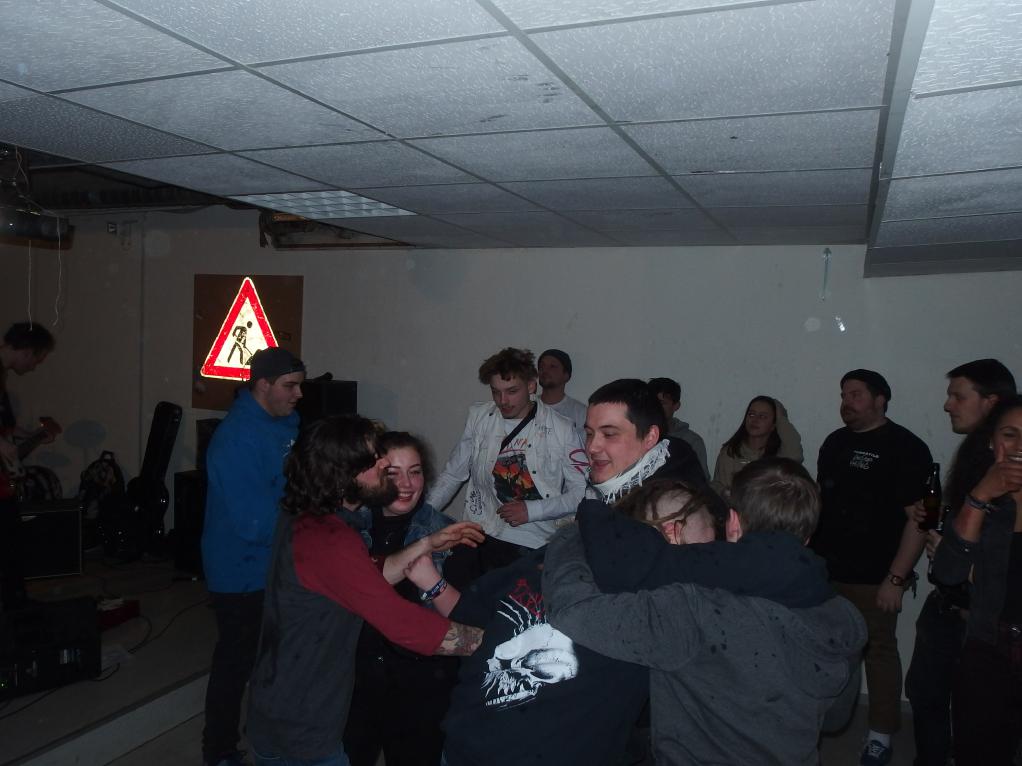 Skinpin aus Australien touren seit über einem halben Jahr durch Europa und den Ostblock und zwar ohne Unterlass von einer Location zur nächsten. Letztes Jahr waren sie schon mehrfach im Saarland, in Wiebelskirchen und in St. Wendel auf dem Punk For Help-Festival. Und müde sind sie lange nicht, auch wenn Sänger und Gitarrist Rickard den kompletten Konzertabend bis zum Auftritt hinter dem Merch verbrachte. Schlagzeugerin Anna dagegen schaute sich die Bands an. Das war dann auch die ganze Besetzung, einen Basser sucht man vergeblich. In fast einer Stunde ballerte sich die Band dann durch ein sehr angenehm schnelles Set bestehend aus fast 30 Songs. Schneller Punk, etwas in Crust-Richtung, sehr angenehme Menschen. Auch sehr gute Publikumsreaktionen.