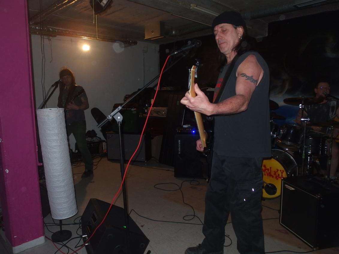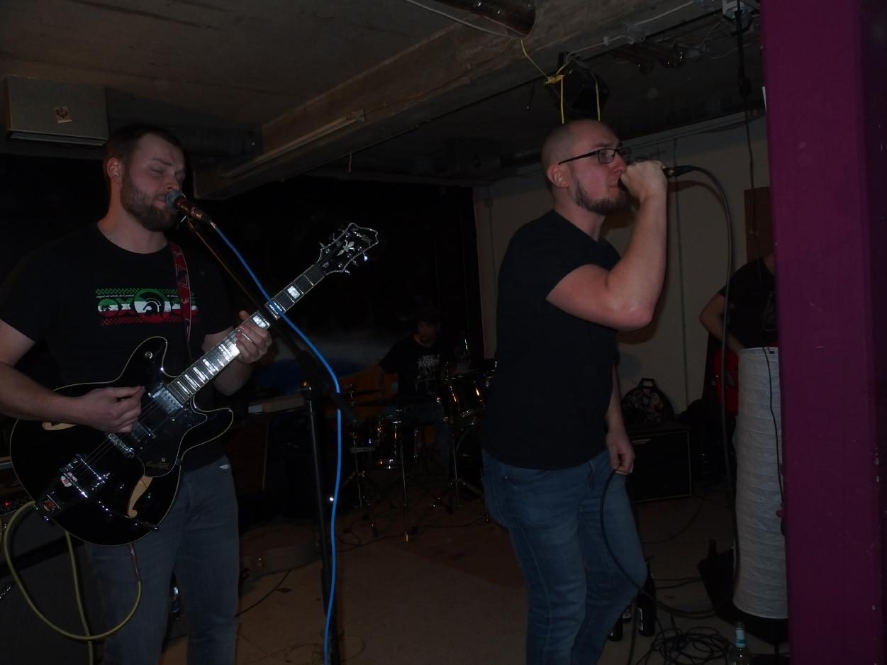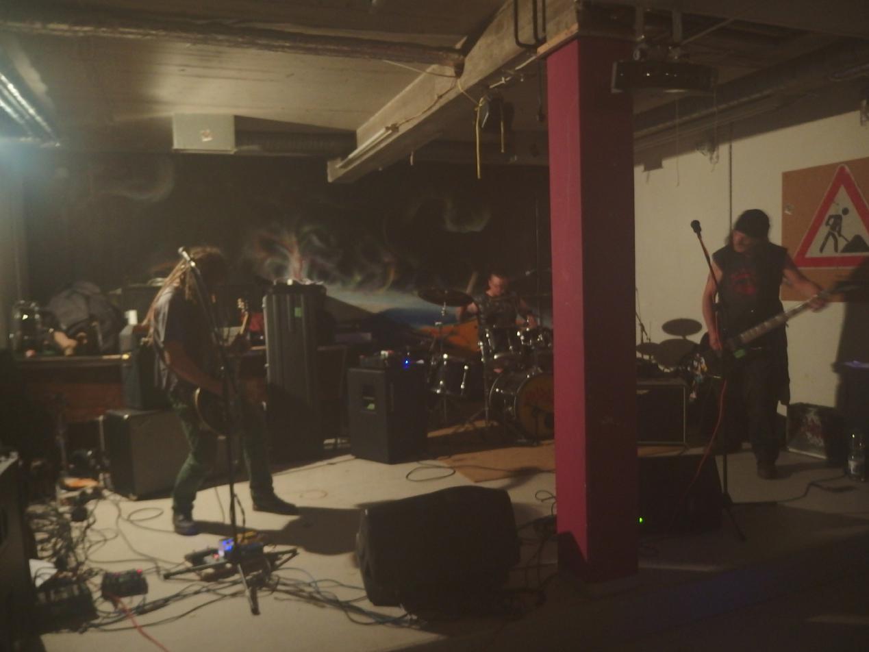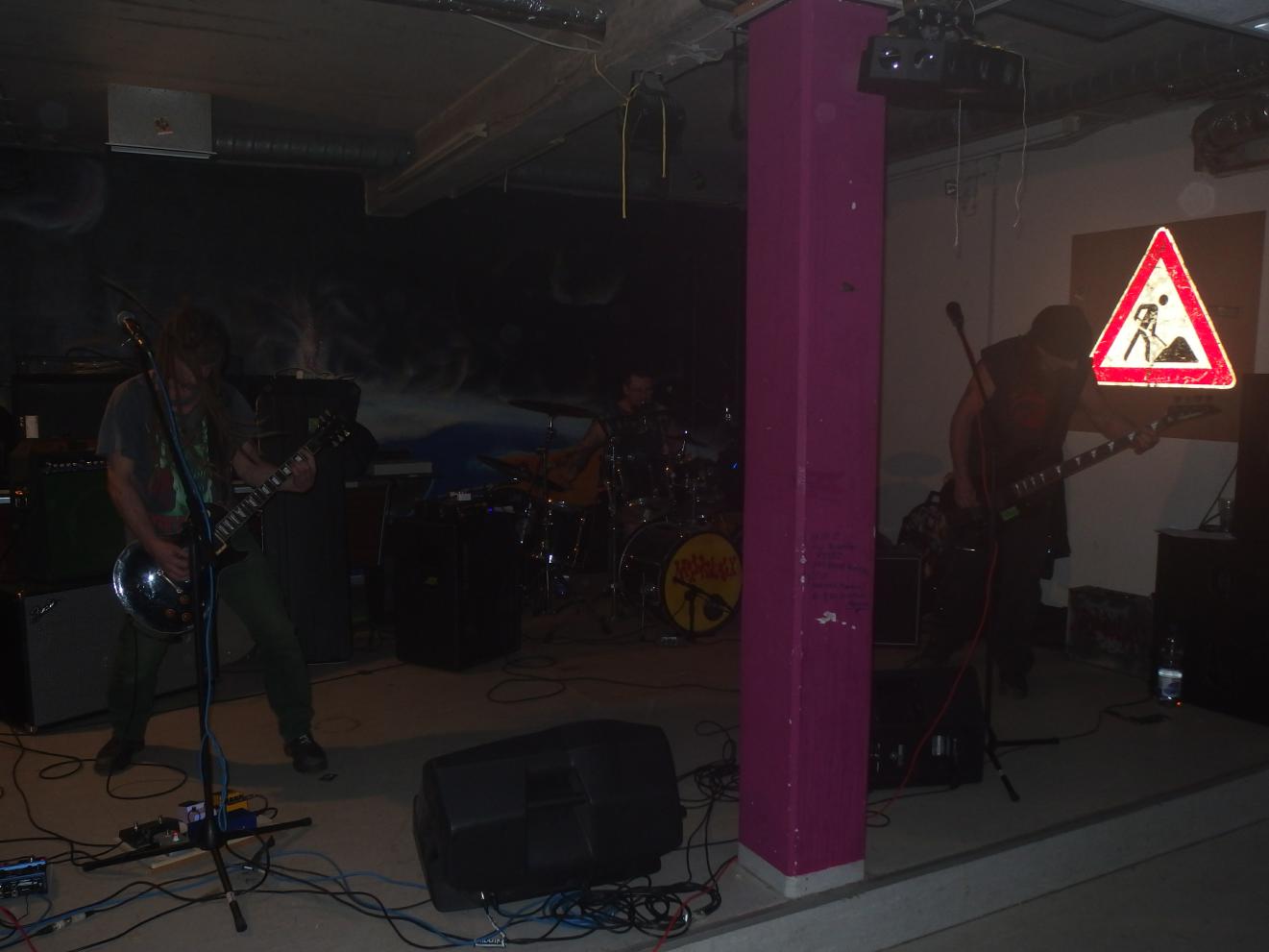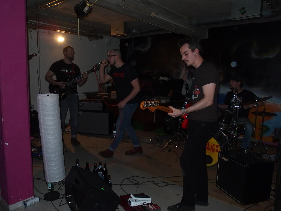 So kam ich gerade rechtzeitig zu Morlox aus Saarbrigge (saarländisch für Saarbrücken), die ich bisher noch nicht kannte. Benannt nach den Bösewichtern aus Die Zeitmaschine von H.G. Wells, fühlte man sich tatsächlich in der Zeit zurückversetzt. Die erst im letzten Jahr im Februar (alles Gute zum Einjährigen nachträglich) gegründete Band spielt nämlich ordentlichen Rumpel- und Schrammelpunk mit texten gegen Bullen und Staat. Mit Nazibastard gab es auch ein Lied von der Quasi-Vorgängerband Seasick, bei der zumindest zwei von der Gruppe spielten oder spielen. Ballerte live gut rein. An dem Abend hatten sie außerdem gerade den Release ihres ersten Albums über Puzzle Records und LSD im Trinkwasser gefeiert. Das Album ist als Cardsleeve für 5€ und als Download kostenlos über Bandcamp zu beziehen.