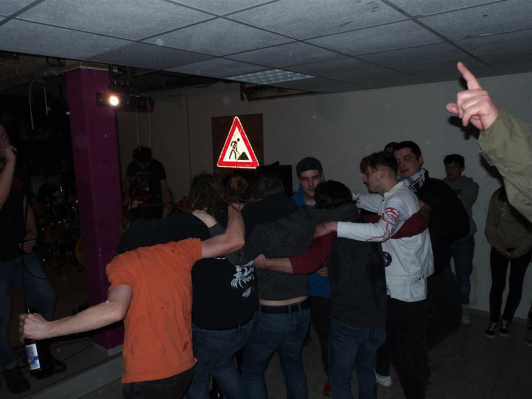Anschließend waren Steinbeißer zu sehen, die im Moment wie kaum eine andere Band ihre Runden im Saarland dreht. Da ihr Oi!-Punk vermischt mit anderen Stilen, nicht mehr ganz zum alten Namen Oi!Port passte, machte ein Namenswechsel viel Sinn. Dennoch wollte das Volk auch viele alte Lieder hören und das bekam es auch. Gefordert wurde außerdem In der Kneipe zur trockenen Kehle, das dann auch frenetisch abgefeiert wurde, samt Gesangseinlagen diverser Gäste. Nach dem Song Der alte Pulk, einer der Oi!Port-Klassiker gabs dann auch noch In Gotha gibts nen Laden. Bei Steinbeißer ging das Publikum dann auch richtig ab, während die Zuschauerreaktionen bei Morlox noch etwas verhalten waren. Die Bilder im Anhang dürften Bände sprechen. Demnächst soll ihr neues Album erscheinen. Die neuen Songs ballern schon gut rein.