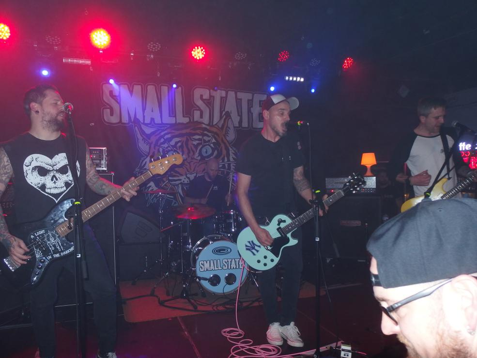 Wer sind eigentlich Small State? Nun, von jetzt an wohl die Band, die eine Reunion-Show im ausverkauften Kleinen Klub hatte. Ja, Monate vorher ausverkauft und keine Gästelistenplätze. Ein sensationeller Erfolg. Für alle, die nicht aus dem Saarland kommen… Bei Small State handelt sich um melodischen Punkrock. Die Band hat sich 2000 gegründet und in ihrer aktiven Zeit zwei Alben und eine EP produziert. 2010 hat sich die Band aufgelöst. Sänger Max Young hat anschließend ein Soloalbum über Midsummer herausgebracht, bei dem er auch alte State-Stücke neu aufgelegt hat. Und plötzlich sind sie wieder da, 10 Jahre später, nicht mehr ganz in Originalbesetzung aber wieder hungrig. Nein, es wird nicht bei dieser Show bleiben, neue Stücke sind da, ein neues Album in der mache und bald gibts auch noch ein Festival…
