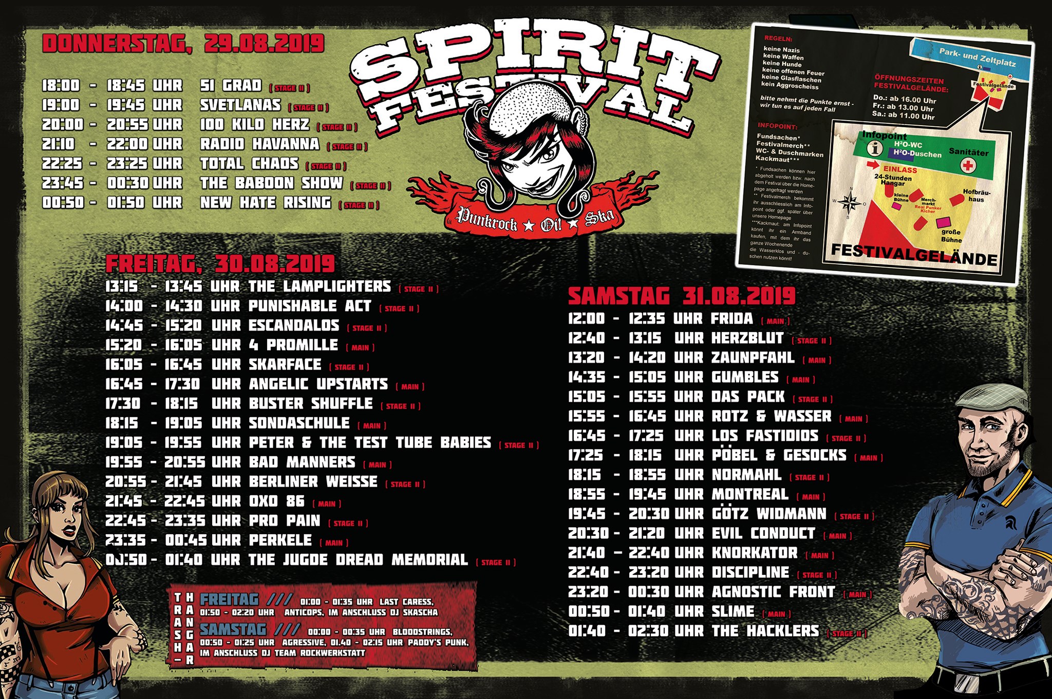 Das Spirit From The Street wird vom 29. bis 31. August 2019 also ein letztes Mal in Niedergörsdorf sattfinden. An den drei Tagen werden Bands wie The Baboon Show, Perkele, Slime, Agnostic Front und Bad Manners auftreten.