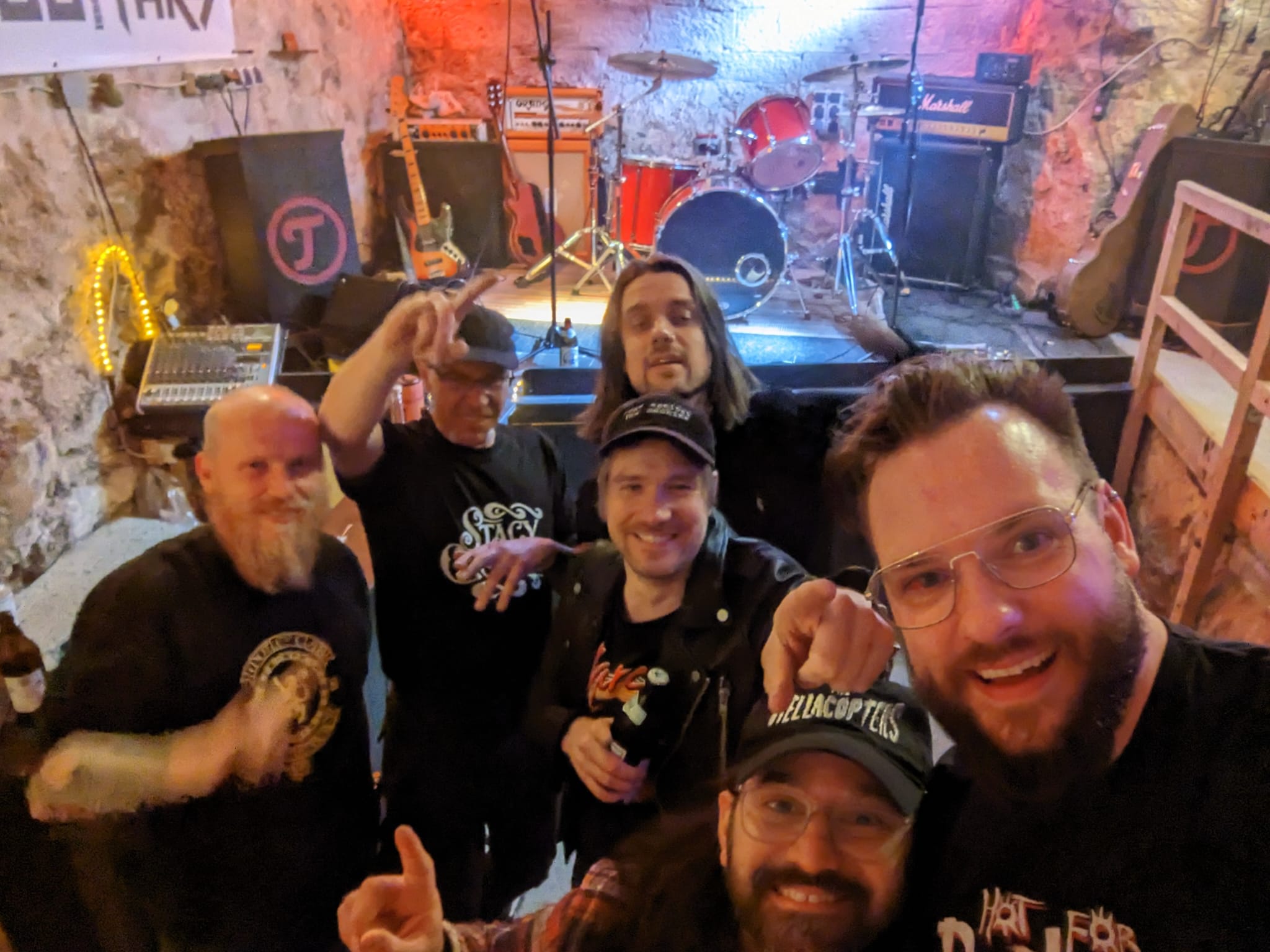 Als wir irgendwann nach einem tollen Abend ins Bett gehen wollen, rumpelt es im Flur – eine Traube von Italienern angeführt von Dustin kraxelt die Treppe hoch. Es wird also noch weiter gefeiert. Bei der Aftershow fliegt angebrannte Pizza in die Nacht, es geht an die letzten Weinreserven und zur Feier des Tages kommt noch hoher Besuch von Small Jackets (Anm. d. Red. mit denen spielen SC ca. einen Monat später in Krefeld).