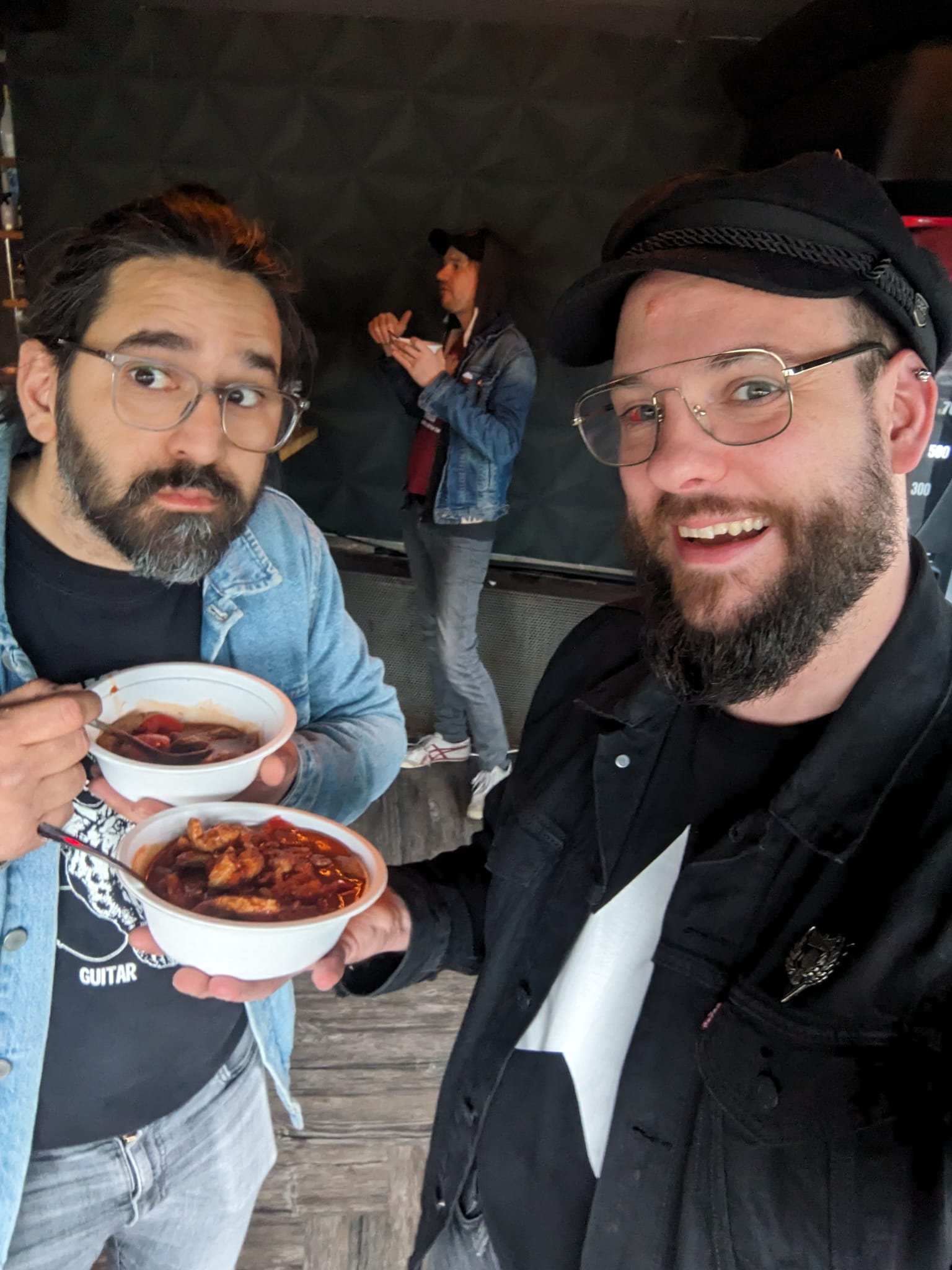 Deja Vu Trip nach Kaufbeuren: Bekannte Gesichter, freudiges Wiedersehen – wir hatten vor einem Jahr bereits das Vergnügen, von dem Verein Subdivision gebucht worden zu sein. Für Schlafplätze für die Nacht (sowie den Rückweg) wurde im Vorfeld gesorgt. Es gibt auch wieder sehr leckeres, veganes Essen. Wir sind anscheinend pflegeleichter als andere Bands. Warmes Essen, kaltes Bier und ein müdes Lächeln reicht uns da meistens. Andere Bands sind da weniger glücklich, sowie auch der etwas motzige Clubbetreiber. Es soll ohnehin das letzte Mal im Glashaus sein, ehrt uns nächstes Mal im neuen Laden! Keine Aftershow, eh nichts los in diesem Kaff außer einem Hitlergruß auf dem Rückweg. Armes Pärchen von der anderen Band findet sich nachts ganz unverhofft inmitten von vier schnarchenden Stacys wieder.