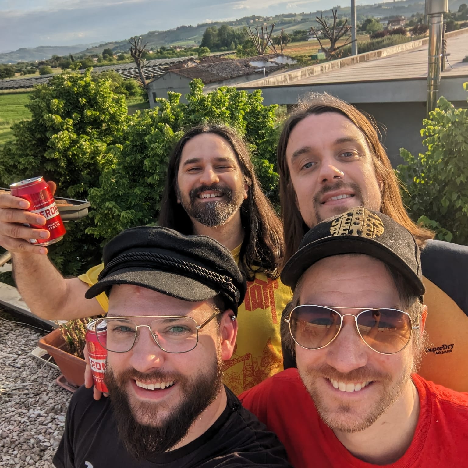 Wir dürfen auf der Dachterrasse im Sonnenuntergang noch ein Bier schlürfen, bevor der Soundcheck ansteht. Band Idylle. Danach Dolce Vita: Sämtliche Tische werden für die Bands zusammengerückt; erst kommt Bruschetta, dann Pasta, Espresso und ein Schluck Wein, bevor alle sich langsam vorbereiten gehen.