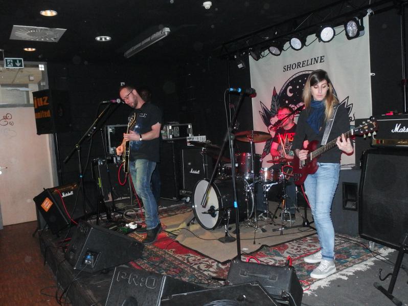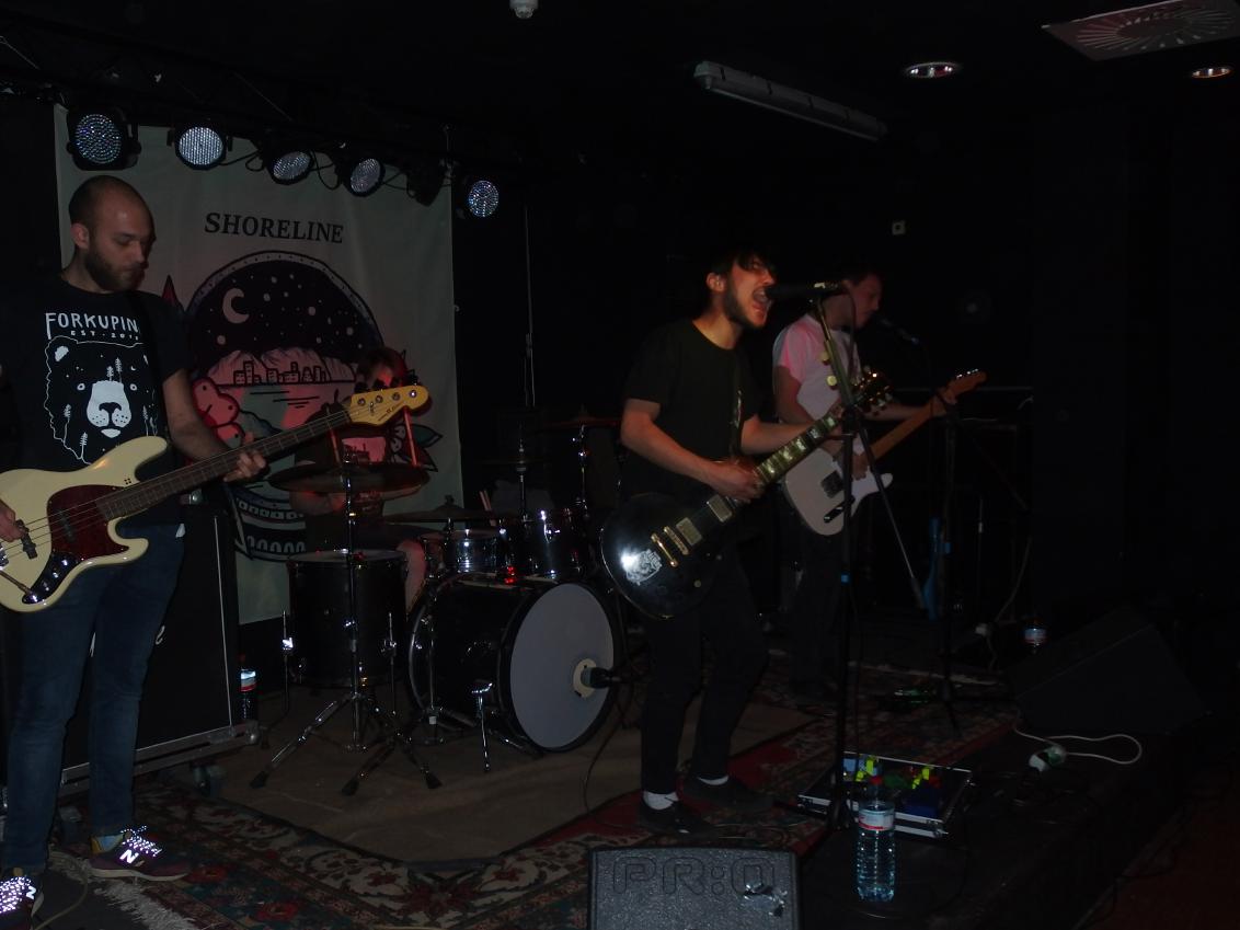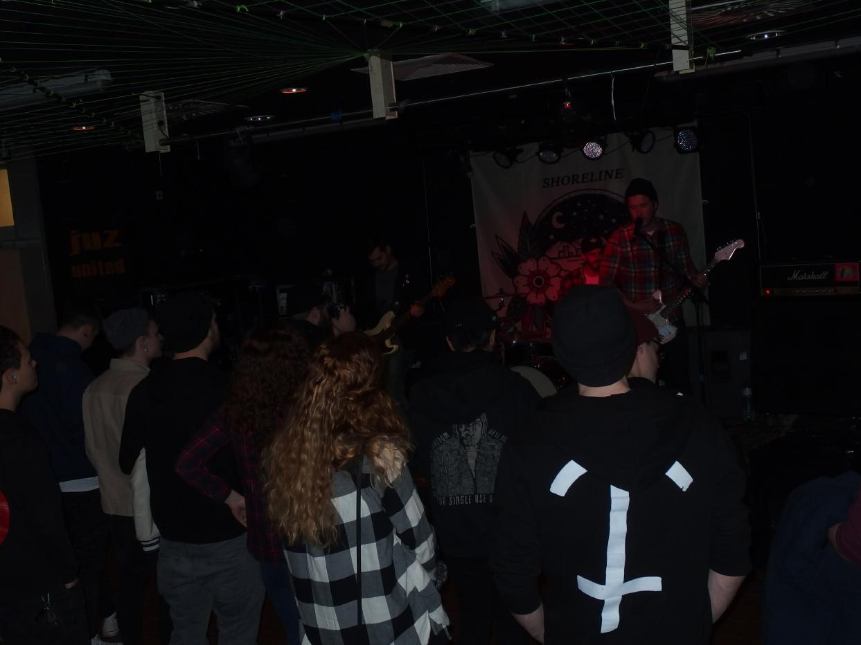 Shoreline sind jetzt über einen Monat auf Tour und nicht müde. Sie freuten sich sehr, alte Bekannte zu sehen, unter anderem von der Band Tides! bei denen sie früher im Monat übernachten durften. Grüße gingen auch raus an Viva con agua und natürlich die Veranstalter.