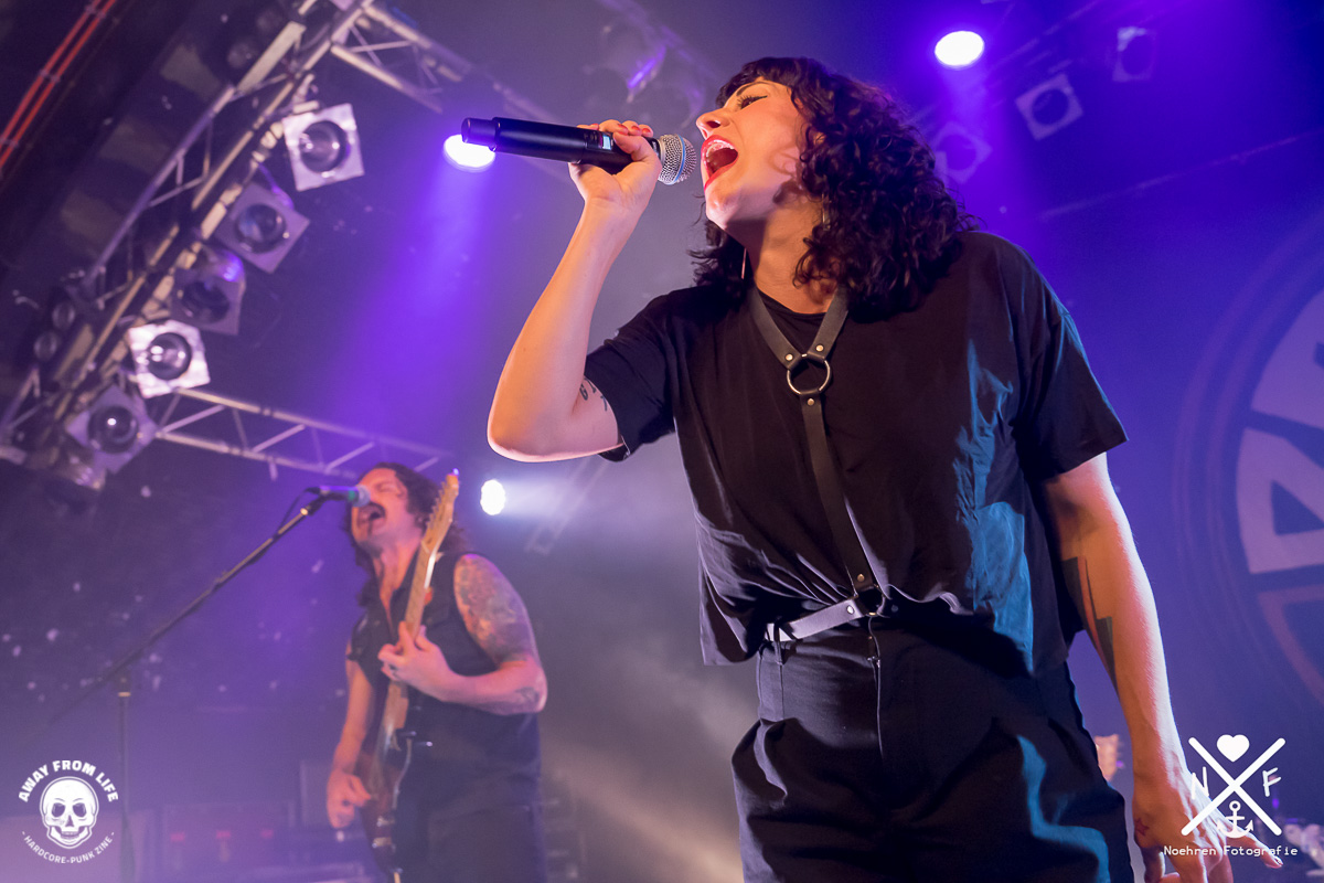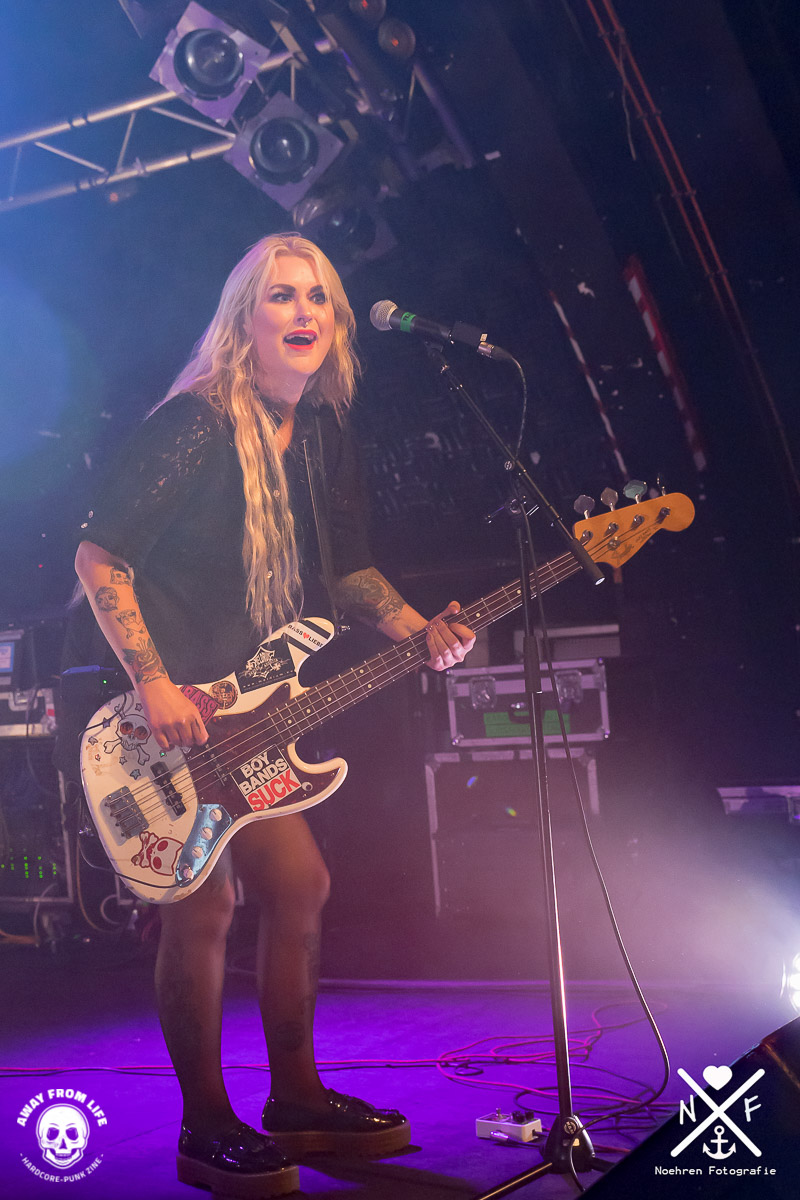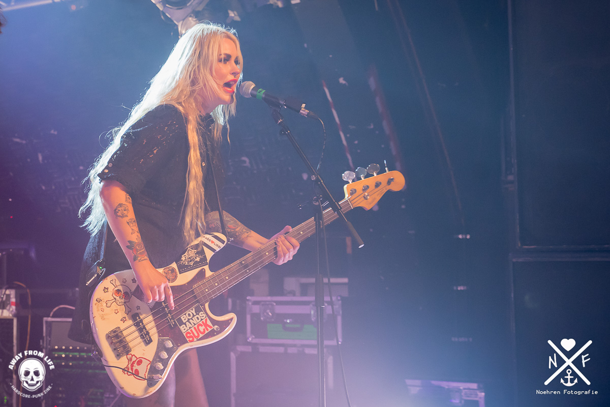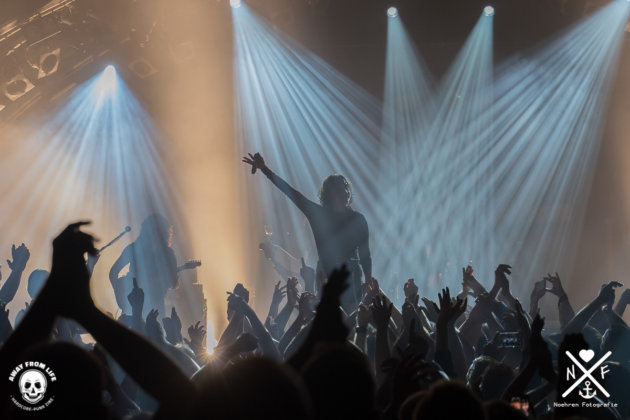 Fiel die Stimmung tatsächlich mal etwas ab setzte die Band einfach den nächsten Reiz, etwa durch klare politische Statements in Form von Mittelfingern für den amtierenden US- Präsidenten. Wie schön doch 2000 Mittelfinger aussehen können, herrlich. Auch die Bandvorstellung ist aller Rede wert, wer nimmt sich schon fast zehn Minuten Zeit dafür? Der an Pablo Escobars Sohn erinnernde Gitarrist und Neu-Vater Hakan schien das genauso zu genießen wie Cecilia Boström, die mehr als einmal durch die gesamte Konzertlocation stagedivte.