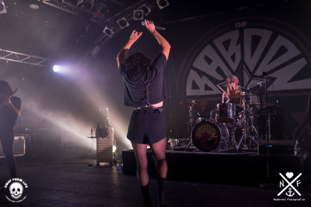 Die Umbaupause war nicht der Rede wert, sodass nach einer ca. 15minütigen Warte- und Bierholzeit das Intro von The Baboon Show startete. Gänsehautmoment während des Intros und auch bei dem anschließenden No Afterglow, die neunmonatige Wartezeit seit dem Ticketkauf schien sich bereits nach dem ersten Tönen gelohnt zu haben. Und dieses Gefühl verließ mich während des insgesamt eineinhalbstündigen Gigs, in welchem die Band die ausverkaufte Markthalle hervorragend unterhielt, zu keiner Zeit. Der Sound war zudem auf einem hohen Niveau und die Stimmung prächtig – auch wenn die „Partizipationsquote“ auf den Rängen nicht immer überzeugend hoch war. Letztes tat dieser fast schon kunstvollen Performance der Band allerdings überhaupt keinen Abbruch, im Gegenteil. Kunstvoll bedeutet in diesem Fall, das jedes der vier Bandmitglieder für sich eine spezielle Austrahlung mit sich bringt, sei es aufgrund der Outfits oder der Bühnenpräsenz, das sieht man in dieser Dichte nicht häufig. Unterhaltung auf gehobenem Level, Leute!