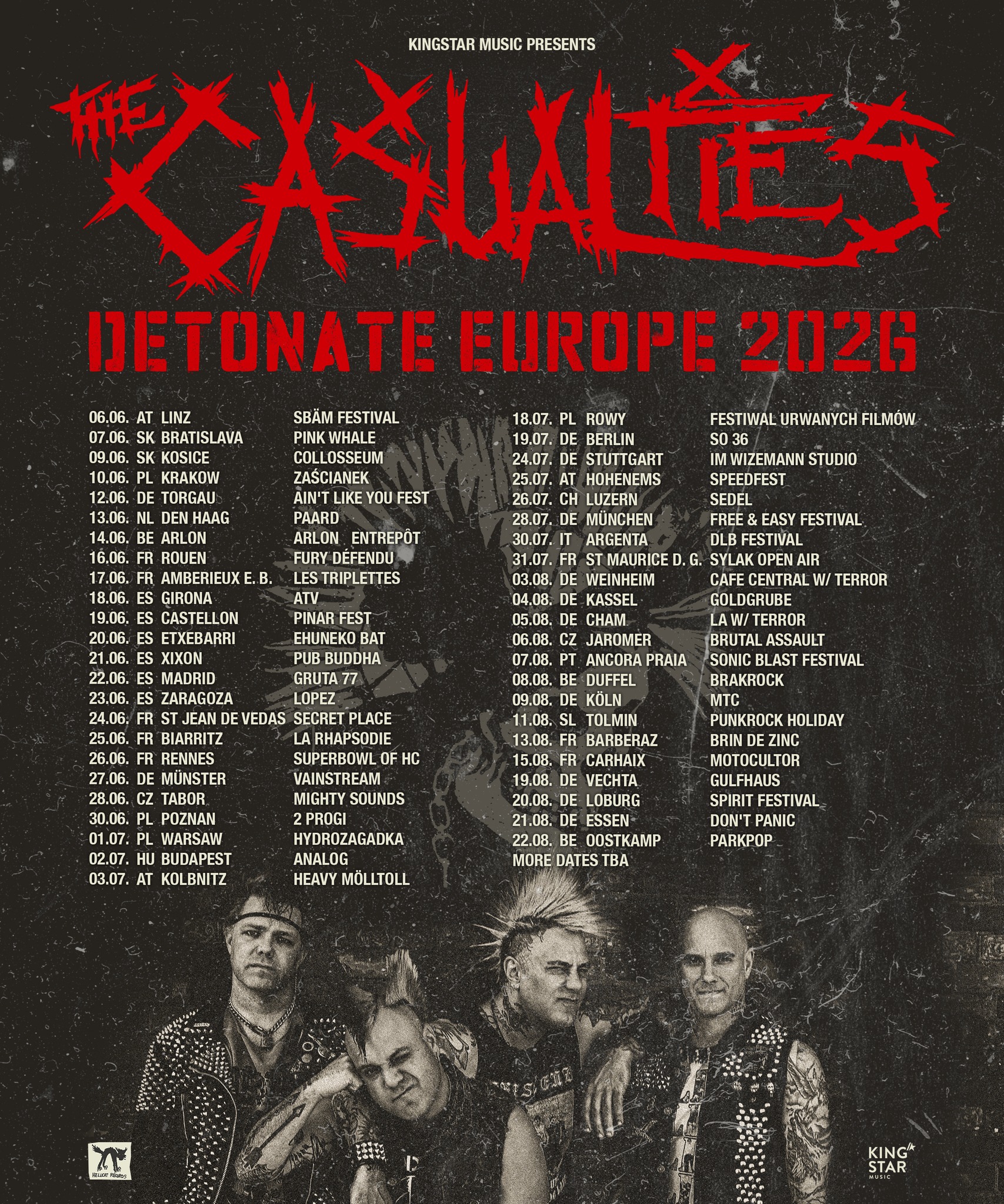 Summer Time – Touring Time. Auch The Casualties werden im Sommer wieder auf Europa-Tour sein, um ihr neues Album „Detonate“ live zu spielen. Den Bericht zum aktuellen Werk, welches im März erschienen war, findet ihr hier.