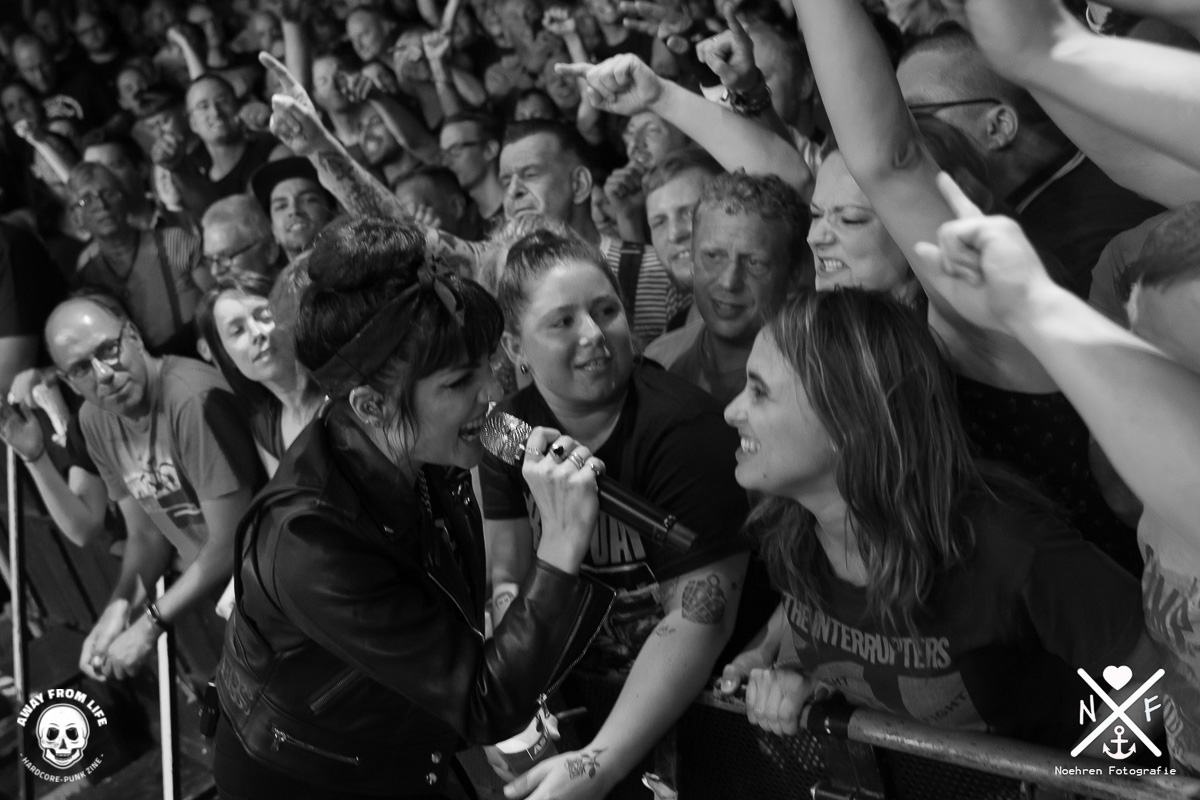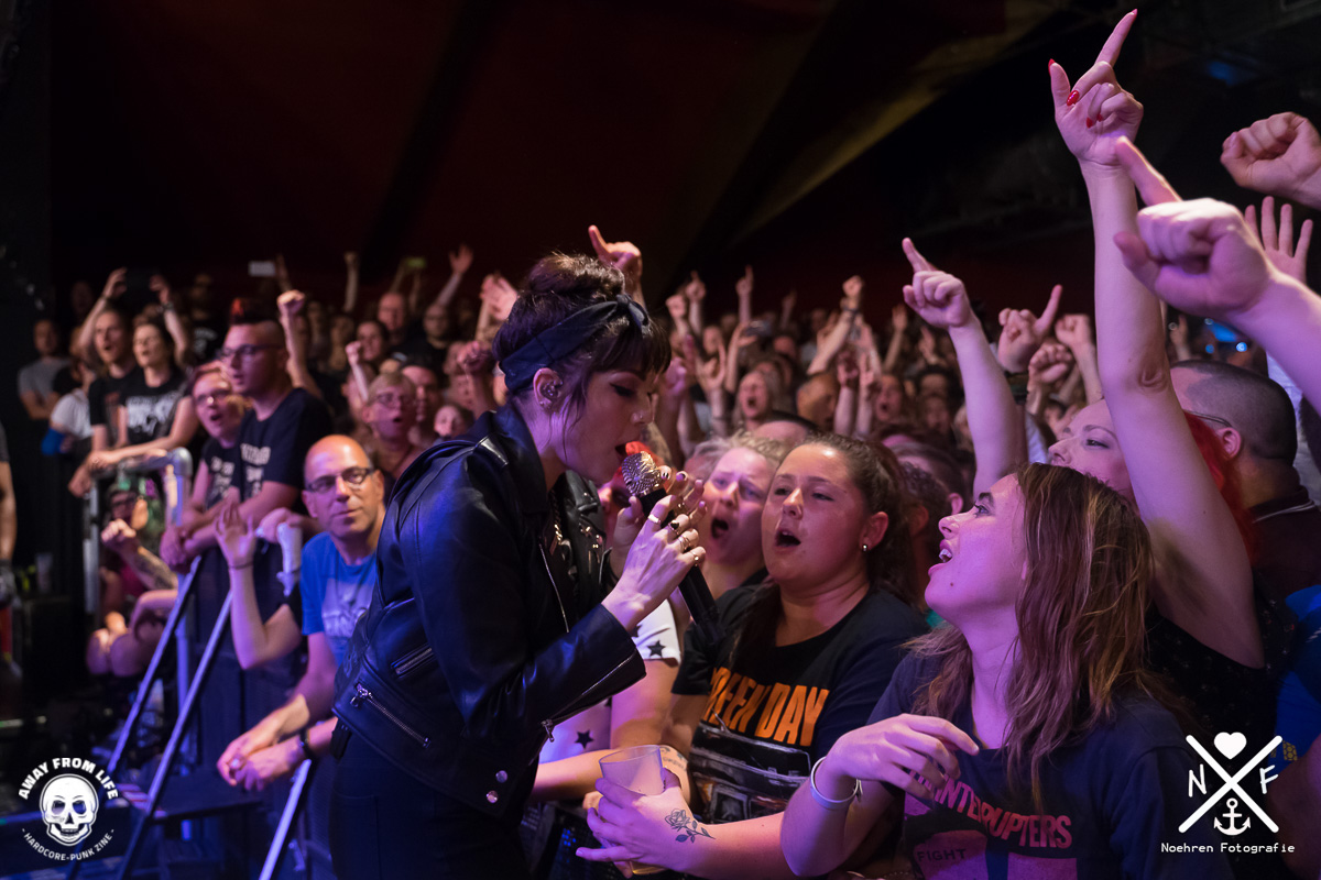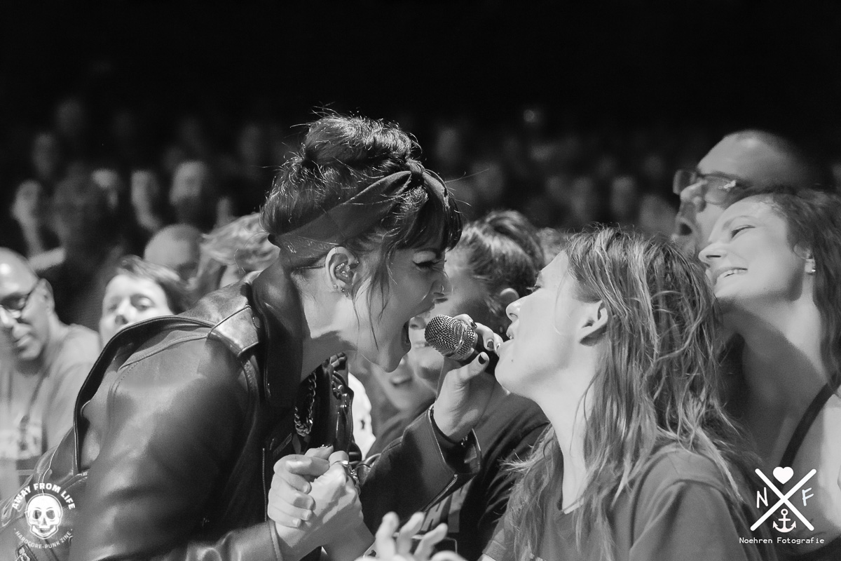 Als dann die Interrupters die Bühne enterten, gab es beim Publikum kein Halten mehr. Sängerin Aimee suchte schon beim zweiten Song die direkte Nähe zu den Zuschauern und begab sich direkt auf Tuchfühlung in den kleinen Graben der Markthalle. Sofort war klar, dass die Band richtig Bock auf den Abend hatte und gleichzeitig auch das Hamburger Publikum auf die Band. Ein fantastisches Konzert, das sicherlich bei allen Beteiligten in Erinnerung bleiben wird. Auf einem der Fotos könnt ihr einen Crowdsurfenden Rollifahrer sehen, so muss Inklusion sein. Darum liebe ich die Szene. Vielen Dank. Egal mit wem ich nach dem Konzert sprach, es vielen immer die Worte „Konzert des Jahres“.