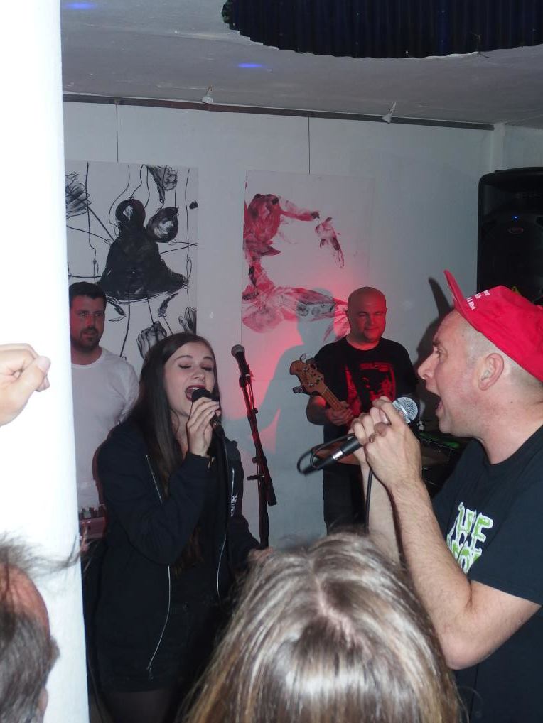 Wer Wonk Unit kennt, weiß, das bei ihnen der Sound stimmen muss. Und so hatte der Soundmann doch einiges zu tun, um ihren sympathischen etwas Ska-beeinflussten Punk durch die Boxen zu bringen. Die Setlist hab ich in den Anhang gestellt. Wer die Band kennt, wird nichts vermissen. Alle Hits wie Horses, Go Easy, Je M’Appele Alex (allerdings nur auf Zuruf), Depressed und ihr Megahit Christmas in a Crack House waren dabei. Alex erklärte auch, das es sich eigentlich um einen Auftritt in einem Club voller Freunde handelte. Und genau so ging es dann auch ab, mit Double-Crowdsurfing und immer wieder einzelnen Surfern, wobei es einmal gerade noch glimpflich ausging. Leider fehlt davon ein Foto, weil irgendjemand ja schließlich den Fall auch bremsen musste… Auch Wonk Units Beitrag zum Brexit We Are the England (übrigens lange vor dem Brexit geschrieben) gabs natürlich. Dazu immer wieder Anekdoten. Gäste wurden auch auf die Bühne gerufen. So durfte eine junge Frau auch ein Ständchen zum Besten geben. Weiß leider nimmer welchen Song.