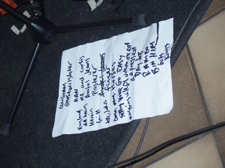 Ach ja, einen brandneuen Song stellte Alex auch vor und gab dabei einen Eindruck, wie das Songwriting in der Band funktioniert. Der Zweizeiler ist auf jeden Fall ein großer, großer Hit und handelt von Fahrradfahrern die in Zweierreihen den Bandbus blockieren. Dann war irgendwann noch Wunschstunde. Neben dem oben angesprochenen Je M’Appele gabs noch Los Angeles, was Alex dem neuen Drummer noch schnell beibringen musste. Am Ende gabs noch Kings Road Sporting Heroes, und dann nochmal den Bicycle-Song für den Max von Christmas auch noch mal kurz randurfte.
