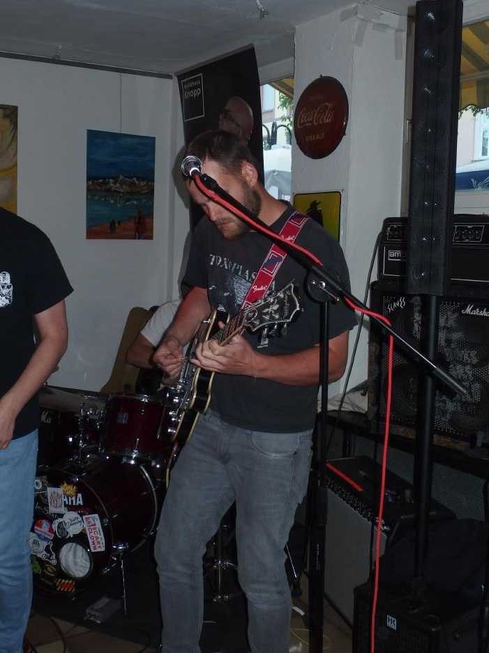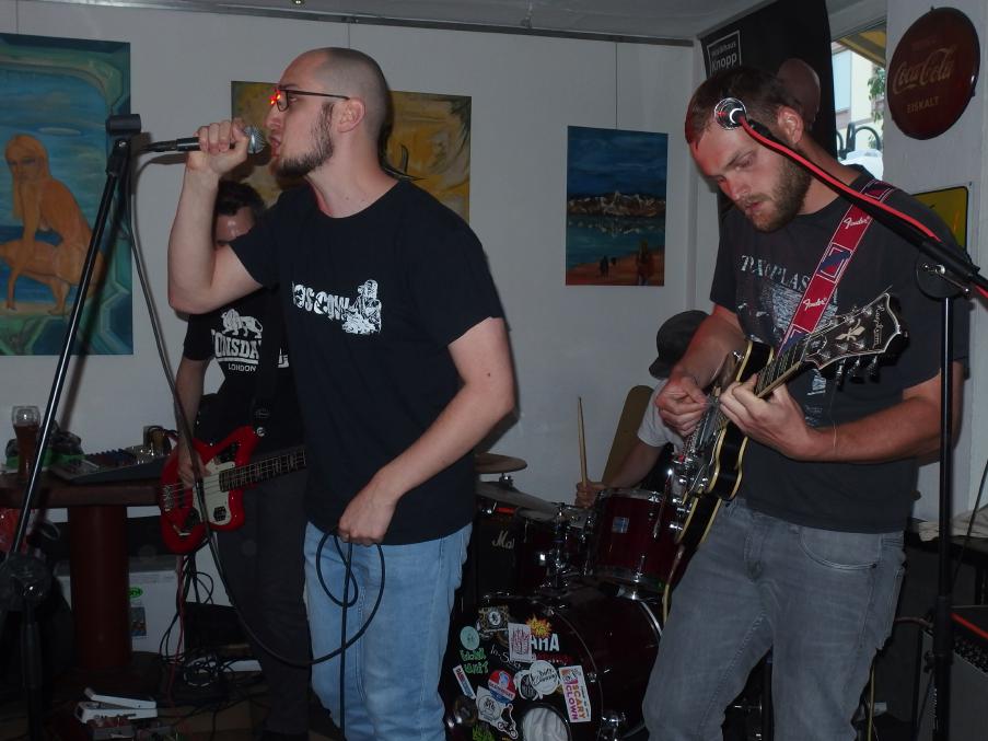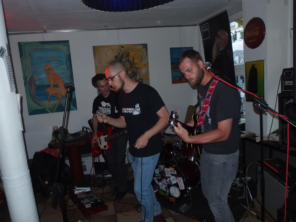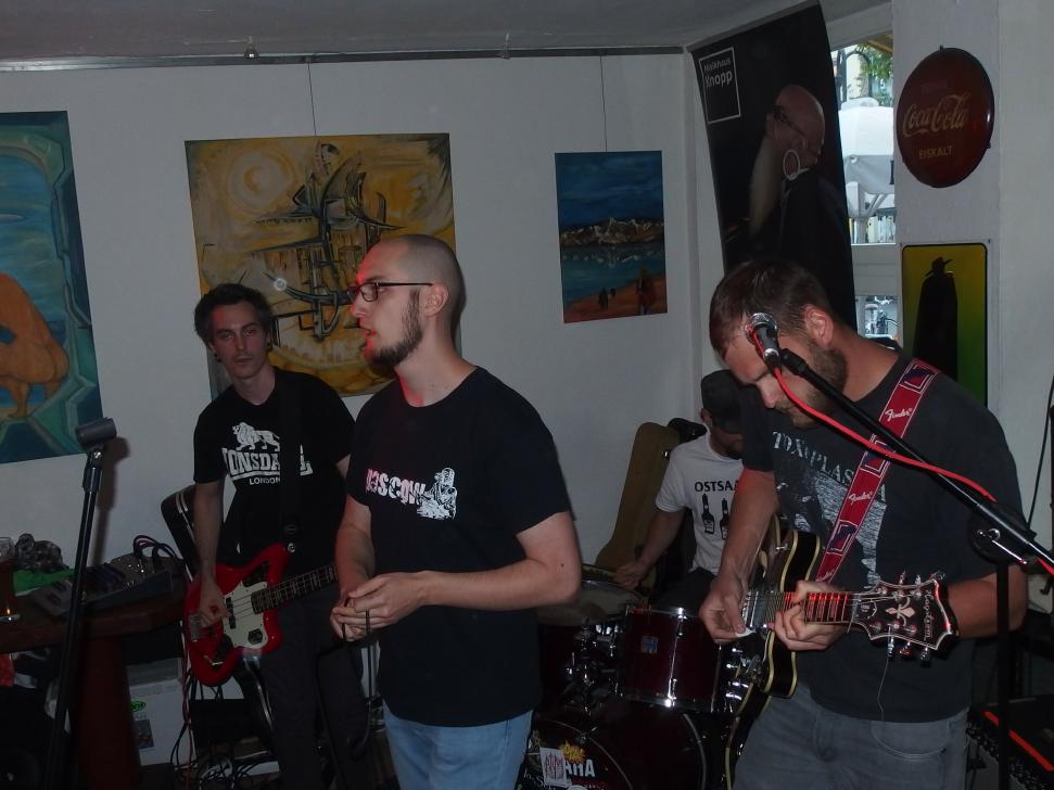 Tante Anna ist eine gemütliche Kneipe in der Saarbrücker Innenstadt, genauer am St. Johanner Markt. Am Sonntag vor Pfingstmontag traten dort die beiden Bands Wonk Unit und Steinbeißer auf. Und das völlig kostenlos, wobei Spenden natürlich gern gesehen wurden. Das Datum sowie das mäßige Wetter garantierten großen Zulauf und so versammelten sich doch einige Menschen in und vor der Kneipe, um die beiden Bands zu sehen.