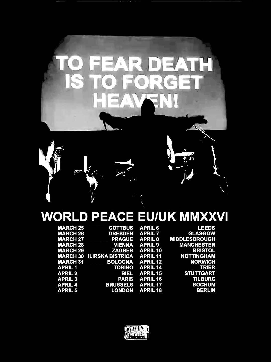 Die Powerviolence-Band World Peace wird nach 2023 und 2024 auch nächstes Jahr wieder in Europa auf Tour sein. Von März bis April stehen dabei auch einige Shows im deutschsprachigen Raum an. Nebend diversen Splits und EPs hat die Band die beiden LPs Come And See (2021) und It Is Written (2023) veröffentlicht.